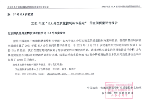 ? ? ? 博奧晶典HLA分型檢測實(shí)驗(yàn)室自2006年正式為中華骨髓庫提供分型檢測服務(wù)起,至今已與骨髓庫合作超過15年,因出眾的質(zhì)量優(yōu)勢、技術(shù)優(yōu)勢、服務(wù)優(yōu)勢,連續(xù)多年在骨髓庫組織的2%抽檢中取得100%準(zhǔn)確率,并多次榮獲骨髓庫頒布的“先進(jìn)實(shí)驗(yàn)室”、“優(yōu)秀合作實(shí)驗(yàn)室”等榮譽(yù)稱號。