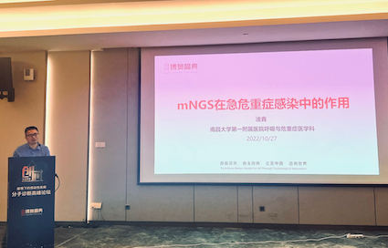 南昌大學(xué)第一附屬醫(yī)院呼吸與危重癥醫(yī)學(xué)科ICU主任淦鑫教授作了題為《mNGS在危機(jī)重癥感染中的應(yīng)用》的主題報(bào)告。他介紹了目前急危重癥感染中病原診斷的急迫需求,及傳統(tǒng)病原學(xué)診斷方法的局限性。并介紹了mNGS技術(shù)在臨床上應(yīng)用的發(fā)展情況及博奧晶典的mNGS技術(shù)。深刻分析了mNGS在急危重癥感染性疾病應(yīng)用中尚存在的問題。以發(fā)表的SCI文章和臨床應(yīng)用實(shí)例,介紹了mNGS技術(shù)在重癥肺炎、膿毒癥中的應(yīng)用情況。對(duì)mNGS技術(shù)在臨床中的應(yīng)用范圍、技術(shù)難點(diǎn)和對(duì)臨床感染性疾病診斷的重要意義做出了精彩的演講。