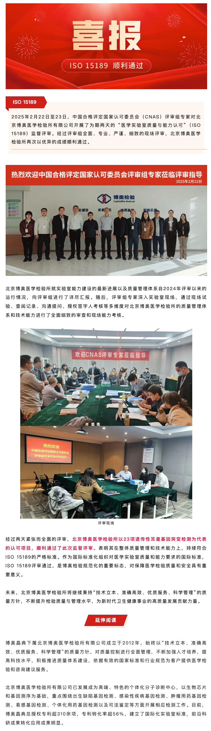 喜報(bào)丨博奧晶典旗下北京博奧醫(yī)學(xué)檢驗(yàn)所順利通過ISO 15189醫(yī)學(xué)實(shí)驗(yàn)室認(rèn)可現(xiàn)場評(píng)審