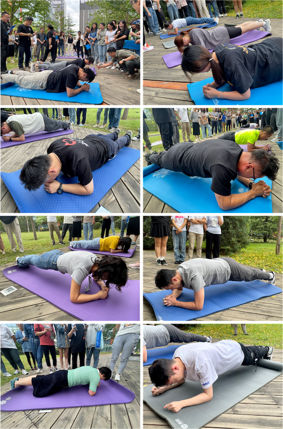 激烈的比賽現(xiàn)場,選手們擺好標(biāo)準(zhǔn)姿勢,蓄勢待發(fā)。隨著時(shí)間的推移,大家不斷突破身體極限,每多一秒都是一份堅(jiān)持、一份超越,激發(fā)了大家敢為人先、不甘落后的斗志。場邊圍觀的員工也被現(xiàn)場的氣氛所感染,大聲吶喊助威,躍躍欲試。