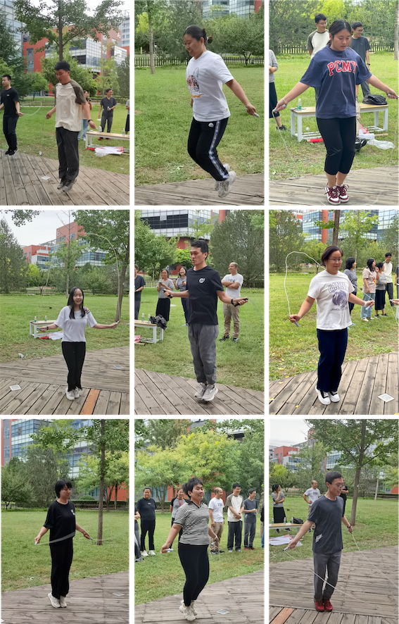 隨著裁判起跳命令響起,計(jì)時(shí)開始,緊張刺激的氛圍布滿全場,大家揮動(dòng)雙臂、騰挪跳躍,全力以赴比拼速度與耐力。比賽現(xiàn)場笑聲歡呼聲不斷,精彩紛呈。