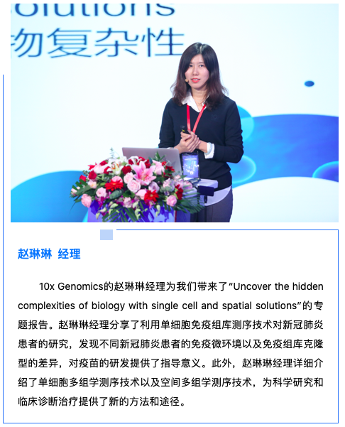 清華大學(xué)醫(yī)學(xué)院研究員、博士生導(dǎo)師,生物芯片北京國家工程研究中心常務(wù)副主任,博奧生物集團(tuán)有限公司高級副總裁,北京博奧晶典生物技術(shù)有限公司總裁邢婉麗女士為本次會議進(jìn)行了開幕式致辭。邢婉麗總裁表示單細(xì)胞測序技術(shù)及空間轉(zhuǎn)錄組技術(shù)在生命科學(xué)和醫(yī)學(xué)研究領(lǐng)域的應(yīng)用日益受到關(guān)注,為高分辨率研究細(xì)胞分群和組織功能研究提供重要的支撐,對發(fā)現(xiàn)組學(xué)間關(guān)系、記錄動態(tài)生物活動具有非常重要的意義,為科學(xué)界和醫(yī)學(xué)界更加深入地去認(rèn)識生命的本質(zhì),解析胚胎發(fā)育過程、腫瘤發(fā)生發(fā)展、新冠肺炎免疫機(jī)制、發(fā)現(xiàn)新的生物標(biāo)志物和治療靶點(diǎn)等提供全新而絢爛的研究視角。邢婉麗總裁對所有報(bào)告嘉賓及參會嘉賓的到來表示熱烈歡迎及衷心感謝!