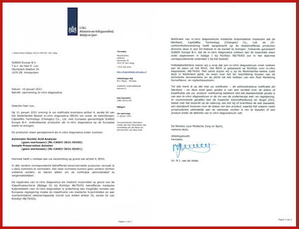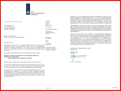 ? ? ? 近日,博奧晶典聯(lián)合清華大學成功研發(fā)的由新型冠狀病毒2019-nCoV核酸檢測試劑盒(全集成碟式芯片法),英文名稱:SARS-CoV-2 Nucleic Acid Detection Kit (Integrated Isothermal Amplification Chip Method)和全自動核酸分析儀,英文名稱:Automatic Nucleic Acid Analyzer組成的全集成芯片實驗室系統(tǒng)獲CE準入資質(zhì)(證書號:NL-CA002-2021-55957和NL-CA002-2021-55450),獲CE準入資質(zhì)表明該產(chǎn)品符合歐盟醫(yī)療器械相關(guān)指令的符合性要求,具備歐盟市場的準入條件,將為歐洲地區(qū)的新冠疫情防控工作提供高靈敏度全集成快速檢測工具。