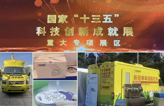 展覽多維度、全方位地展示了中國(guó)科技實(shí)力躍升嶄新臺(tái)階,精選、優(yōu)選了一批重大標(biāo)志性科技成果,既有國(guó)之重器,又有惠及民生的創(chuàng)新產(chǎn)品。作為科技賦能抗疫的“排頭兵”,在本次國(guó)家“十三五”創(chuàng)新成就展的科技抗疫展區(qū),博奧晶典攜呼吸道多病毒核酸檢測(cè)芯片系統(tǒng)、新型冠狀病毒2019-nCoV核酸檢測(cè)試劑盒(全集成碟式芯片法)、車(chē)載新冠病毒核酸檢測(cè)移動(dòng)實(shí)驗(yàn)室驚艷亮相。