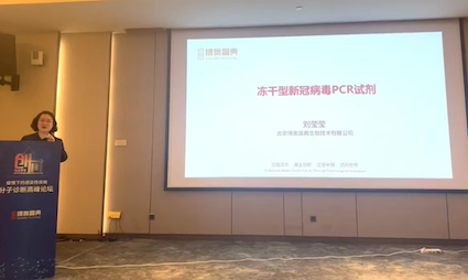 博奧晶典產(chǎn)品總監(jiān)劉瑩瑩博士作了題為《凍干型新冠病毒PCR試劑》的主題報(bào)告。作為今年即將重磅上市的嶄新產(chǎn)品,凍干型新冠病毒PCR試劑實(shí)現(xiàn)了技術(shù)上的重大突破。與液體試劑相比,預(yù)封裝的凍干試劑,省空間、省人力、省耗材、省時(shí)間,最快可在40分鐘內(nèi)完成擴(kuò)增檢測(cè),滿足臨床對(duì)樣本質(zhì)量及檢測(cè)過程的全程監(jiān)控,靈敏度高達(dá)150拷貝/毫升,確保結(jié)果準(zhǔn)確可靠。同時(shí),劉瑩瑩博士講到,包含全集成芯片實(shí)驗(yàn)室系統(tǒng)、全集成新冠病毒核酸檢測(cè)移動(dòng)實(shí)驗(yàn)室、全自動(dòng)分杯系統(tǒng)、全自動(dòng)核酸提取純化儀在內(nèi)的博奧晶典新冠病毒核酸檢測(cè)整體解決方案,可為疫情防控提供多重保障。