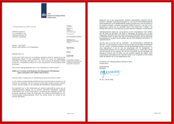 2022年11月4日,博奧晶典新冠病毒核酸檢測整體解決方案再添新成果,凍干型高靈敏度的新型冠狀病毒(2019-nCoV)核酸檢測試劑盒 (熒光PCR法)正式獲得醫(yī)療器械注冊證(國械注準(zhǔn):20223401469)。這是國家藥品監(jiān)督管理局審批通過的首個(gè)凍干型新冠病毒核酸檢測試劑盒,同時(shí)具備中國NMPA和歐洲CE“雙證”,為堅(jiān)持“動(dòng)態(tài)清零”,全面加強(qiáng)常態(tài)化疫情防控能力建設(shè)提供全新戰(zhàn)疫利器。