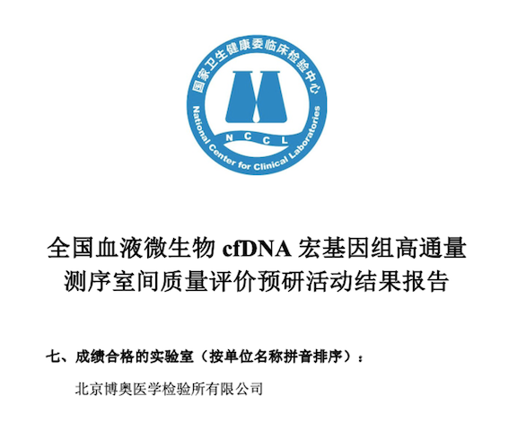 今日,國家衛(wèi)生健康委臨床檢驗(yàn)中心(以下簡稱“臨檢中心”)公布了2023年“全國血液微生物cfDNA宏基因組高通量測序室間質(zhì)量評價預(yù)研活動結(jié)果報(bào)告”。博奧晶典旗下北京博奧醫(yī)學(xué)檢驗(yàn)所順利通過本次室間質(zhì)評,并且檢測病原體與樣本預(yù)期結(jié)果完全一致。