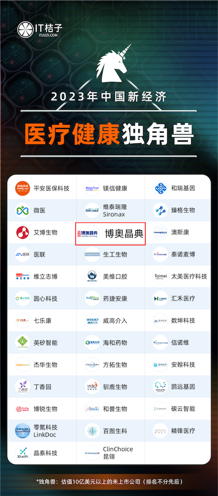 博奧晶典此次上榜中國新經(jīng)濟醫(yī)療健康獨角獸榜單,進一步證明了博奧晶典在生命健康領(lǐng)域的發(fā)展?jié)摿?,以及業(yè)界對博奧晶典的關(guān)注與認可。