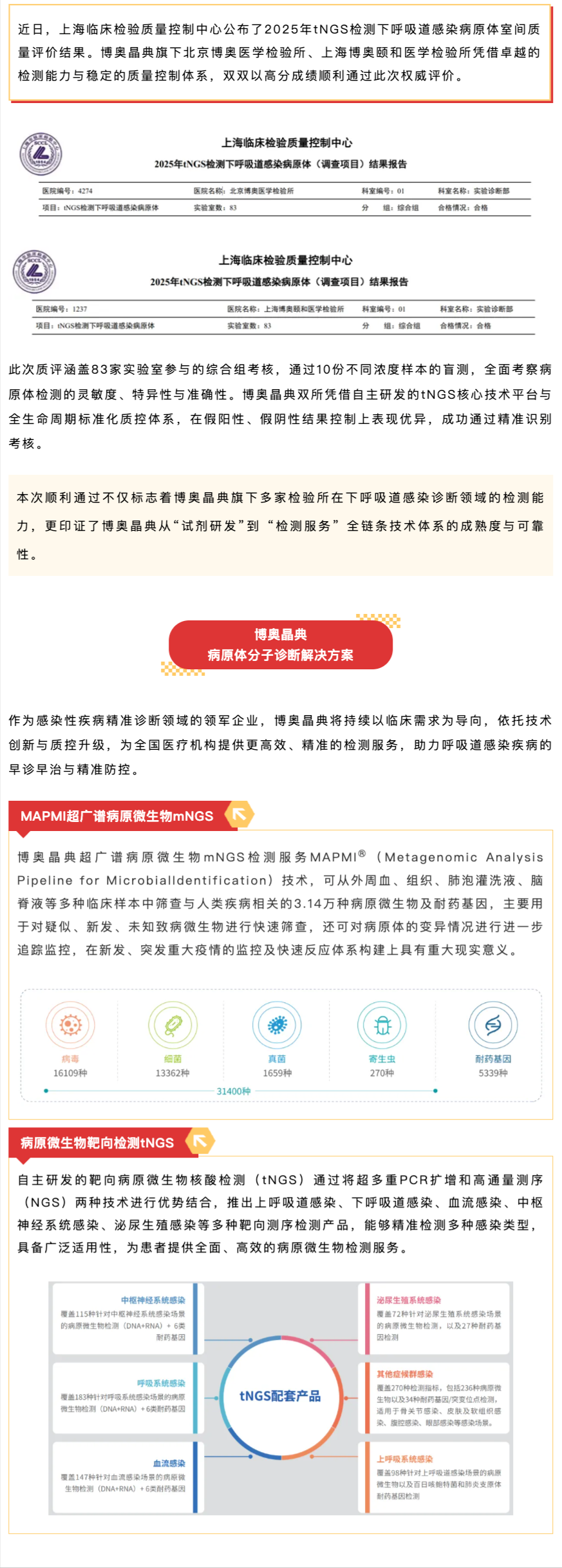 【質(zhì)量捷報】博奧晶典旗下多家檢驗所高分通過上海臨檢中心tNGS質(zhì)評