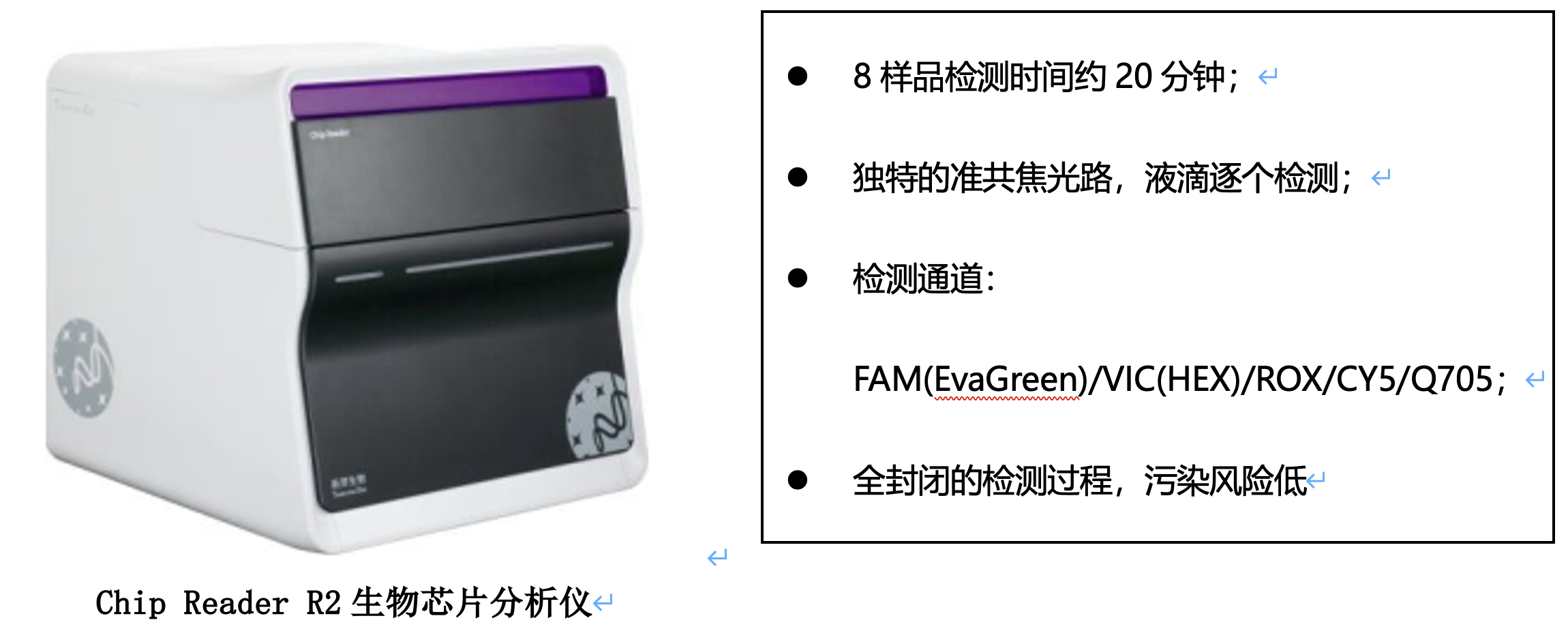 TD-2微滴式數(shù)字PCR系統(tǒng)包括: Drop Maker 樣本制備儀, Chip Reader 生物芯片分析儀,③配套通用 試劑和耗材,儀器平臺使用簡單,手工操作步驟少,整個反應(yīng)過程在封閉空間進(jìn)行,防止:PCR產(chǎn)物的污染,該系統(tǒng)適用于稀有突變檢測、拷貝數(shù)變異和基因相對表達(dá)領(lǐng)域的研究,可廣泛應(yīng)用于腫瘤、遺傳病、感染性疾病的診斷和研究。